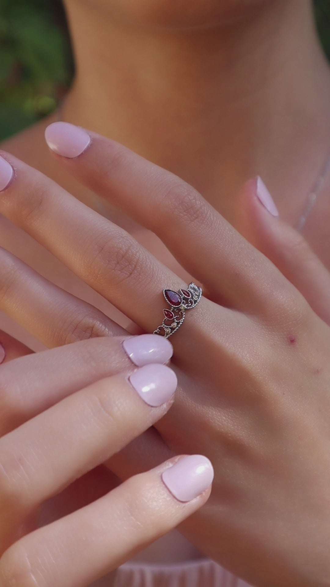 Nope. All our sterling silver pieces are nickel-free, hypoallergenic, and plated with either thick 18k gold or rhodium. That means no green fingers, no rust, and no fading — even with daily wear.