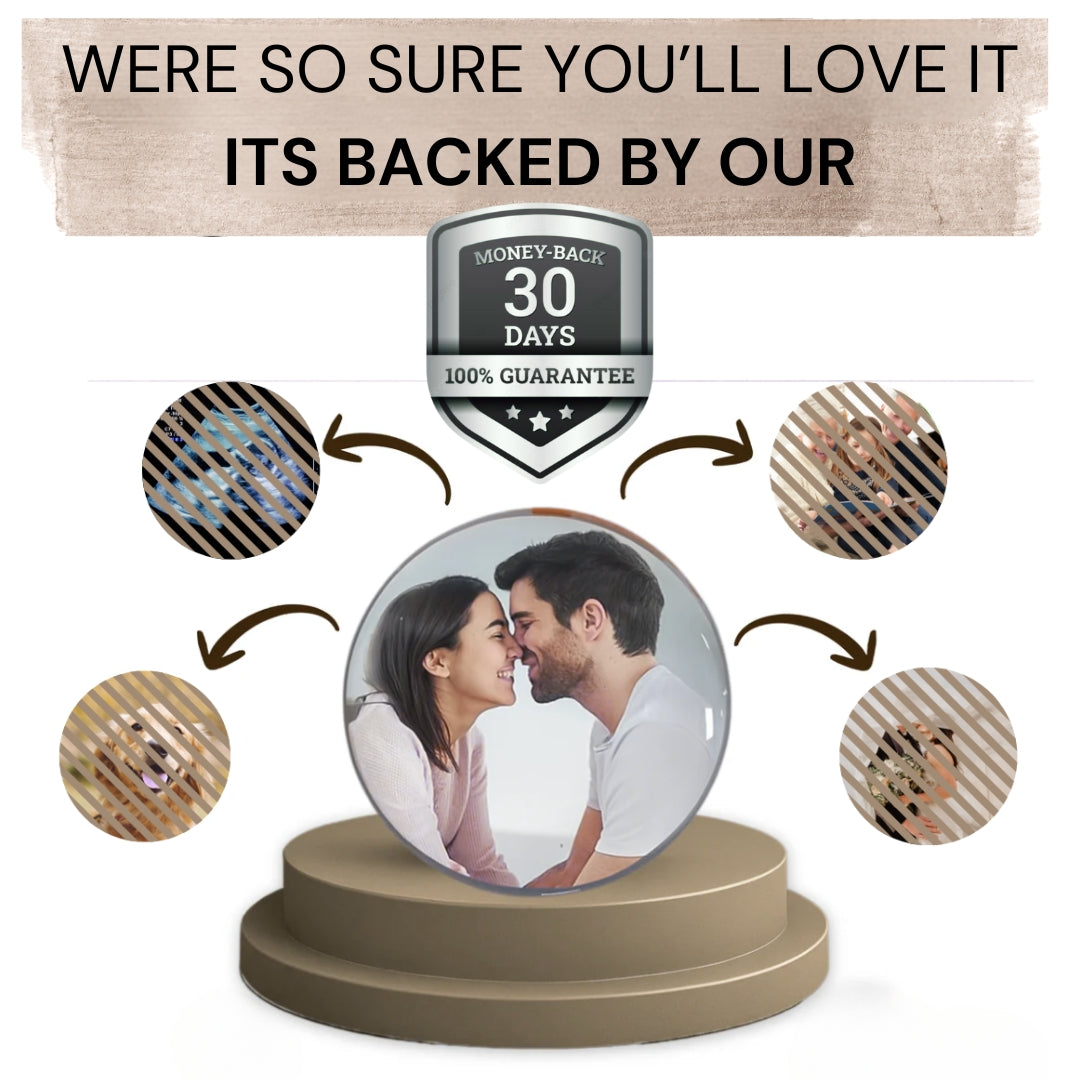 Simply upload a video or photo, and it’s beautifully preserved inside a stunning crystal orb that replays your moment in vivid motion.